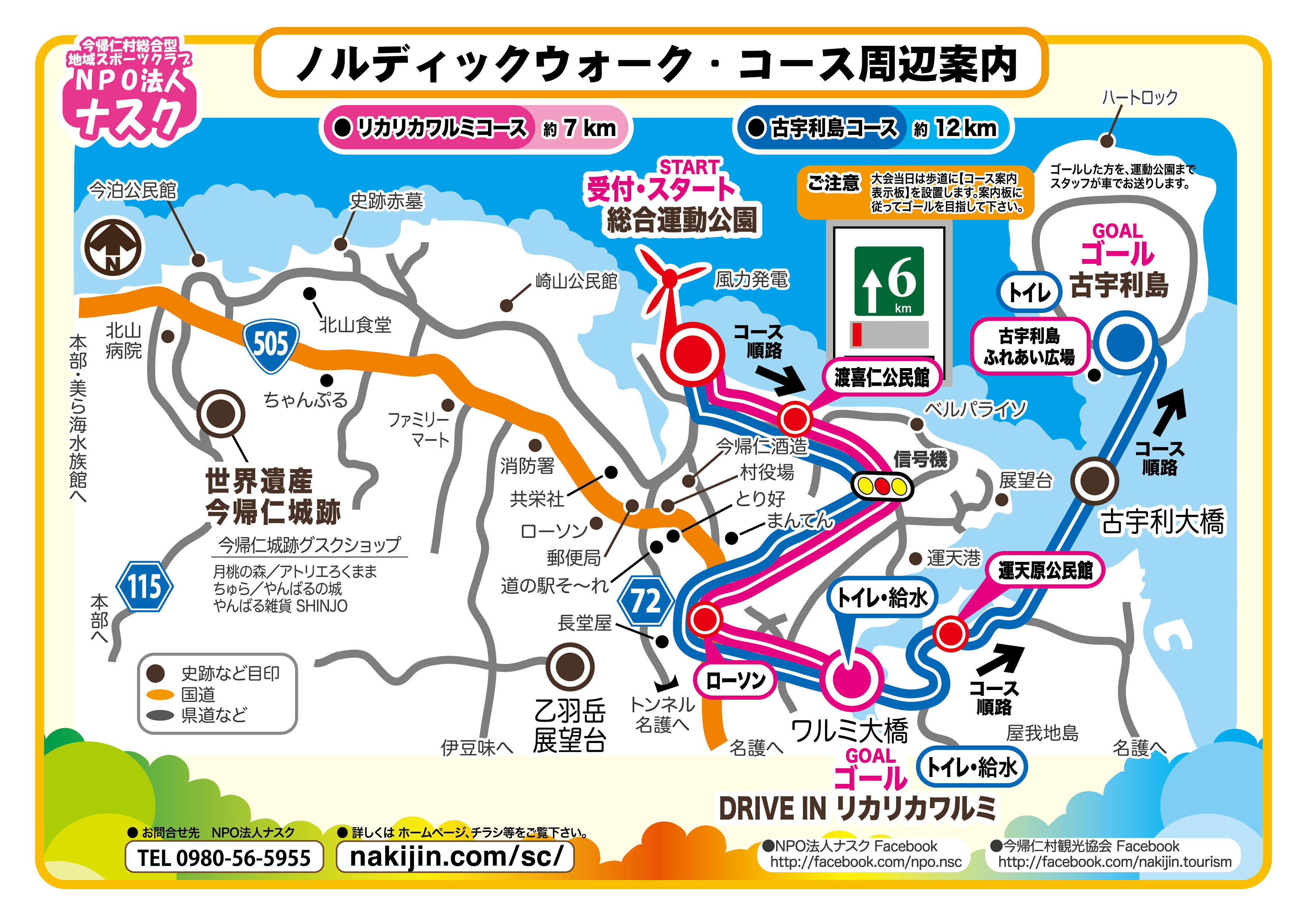 ワルミ大橋を渡って、そして古宇利大橋をわたり島へ向かうコースです。のんびりウォーキングで今帰仁の風景をお楽しみ下さい!!